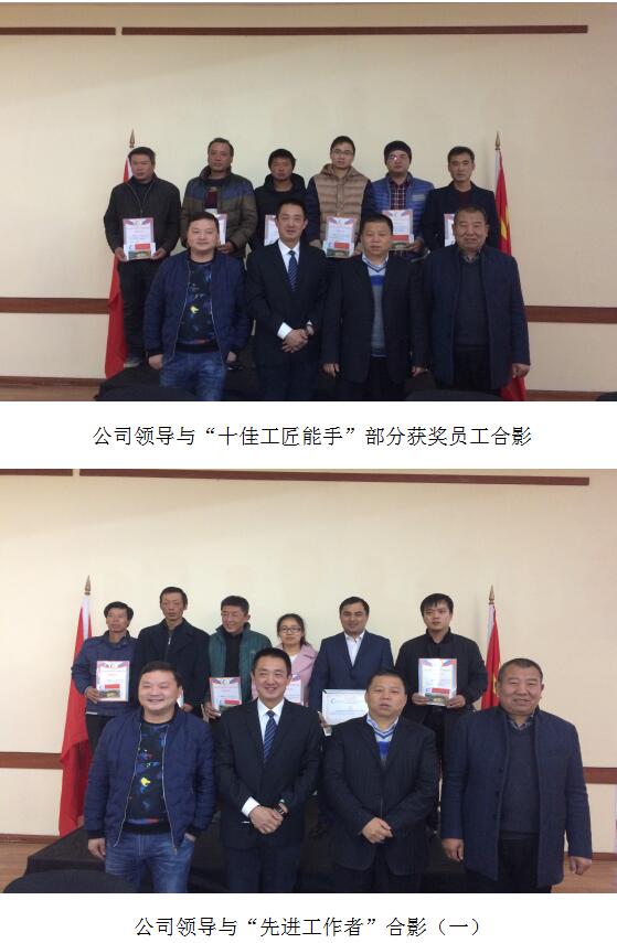 公司按照“年度十佳工匠能手”、“年度先進(jìn)工作者”、“海外工作貢獻(xiàn)獎(jiǎng)”的三個(gè)類(lèi)別對(duì)員工進(jìn)行表彰,頒發(fā)榮譽(yù)證書(shū)、頒發(fā)海外工作貢獻(xiàn)獎(jiǎng)金牌、頒發(fā)獎(jiǎng)金、留影合照,精神鼓勵(lì)為主,物質(zhì)獎(jiǎng)勵(lì)為輔。頒獎(jiǎng)合影環(huán)節(jié)將會(huì)議推向高潮,引起在座員工內(nèi)心共鳴,不由地為他們鼓掌祝賀,以表達(dá)對(duì)他們敬業(yè)愛(ài)崗、吃苦耐勞精神的深深敬意!
